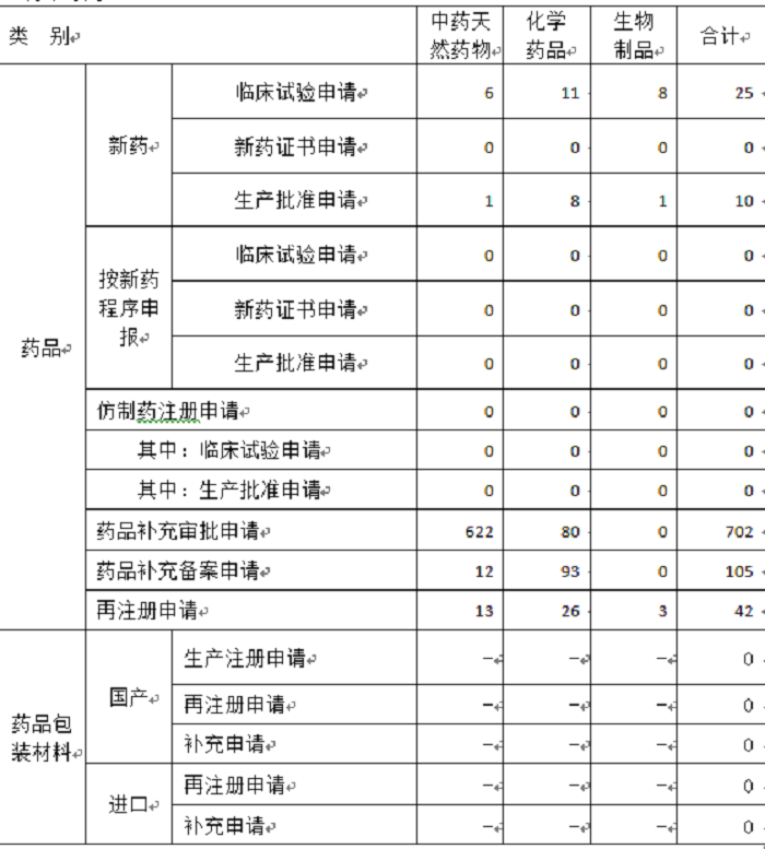 三、药品行政受理情况